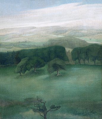 natur · draußen · szenisch · abhang · waldland · baum · landschaft · landschaft · betrieb · anstrich · wales · berg · berge · land · grün · ansicht · geographie · farbe · farbe · grafschaft · rustic · position · jahrhundert · konzept · waliser · erhöhte ansicht · 1910s · 20. jahrhundert · landwirtschaftlich · landscape · arial view · national museum cardiff · kay kays · valerius de saedeleer · saedeleer · valerius de · National Museum of Wales/Heritage-Images