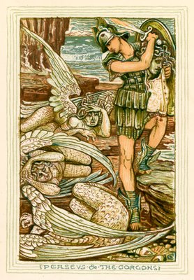 Perseus und die Gorgonen, Illustration aus 'A Wonder-Book for Girls and Boys' von Nathanial Hawthorne(Perseus and the Gorgons, illustration from 'A Wonder-Book for Girls and Boys' by Nathanial Hawthorne)Walter Crane |