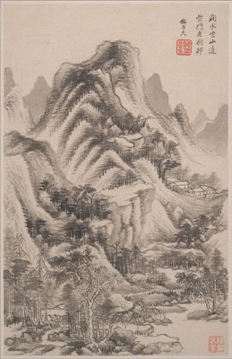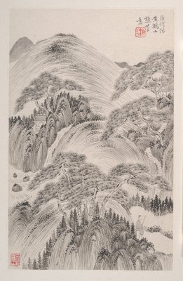 landschaft · berg · berge · land · china · chinesisch · museum · geographie · position · jahrhundert · 17. jahrhundert · farbe · getroffen · metropolitanmuseum der kunst · das metropolitanmuseum der kunst · schwarzes u. weiß · schwarzes und weiß · landscape · heritage art · ink and colour on paper · ink and colour on paper · album of ten paintings · album of ten paintings · wang jian · yuanzhao · lianzhou · wang chien · jian · wang · hsiang-pi · Heritage Art/Heritage Images