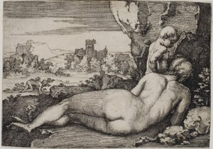 Schlafender junger Herkules, nach Parmegiano. Zustand 2(Infant Hercules asleep, after Parmegiano. State 2)Wenceslaus Hollar |