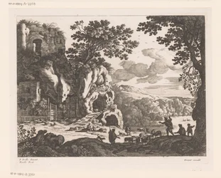 Landschaft mit einer Ruine(Landschap met een ruïne Italiaanse landschappen (series title))Willem van Nieulandt (II)(print maker),Paul Bril(after design by) |