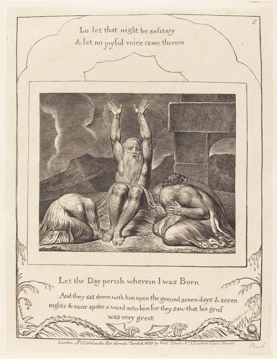 england · fromm · künste · land · religion · kunst · britisch · englisch · verzweiflung · christentum · judentum · jüdisch · position · jahrhundert · großbritannien · biblisch · konzept · hände angehoben · altes testament · 19. jahrhundert · schwarzes u. weiß · schwarzes und weiß · 19.jahrhundert · buch des jobs · william blake · blake · william · heritage art · print · engraving on india paper · Heritage Art/Heritage Images