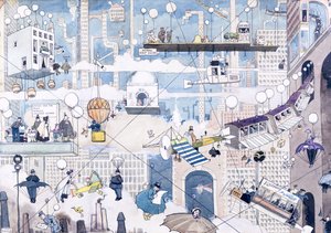Praktische Luftfahrt in Komfort für verheiratete Menschen (Lithografie)(Practical Aeronautics in Comfort for Married People (litho))William Heath Robinson |