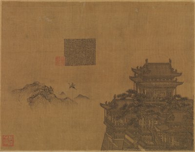(The Yellow Pavilion, ca. 1350 (album leaf; ink on silk))